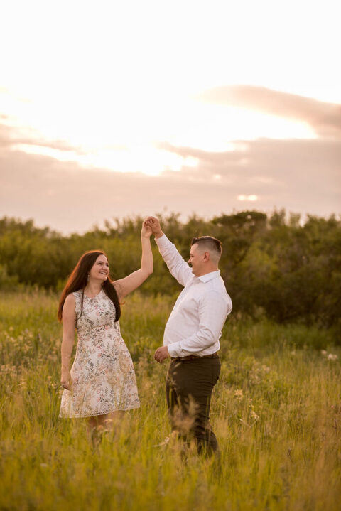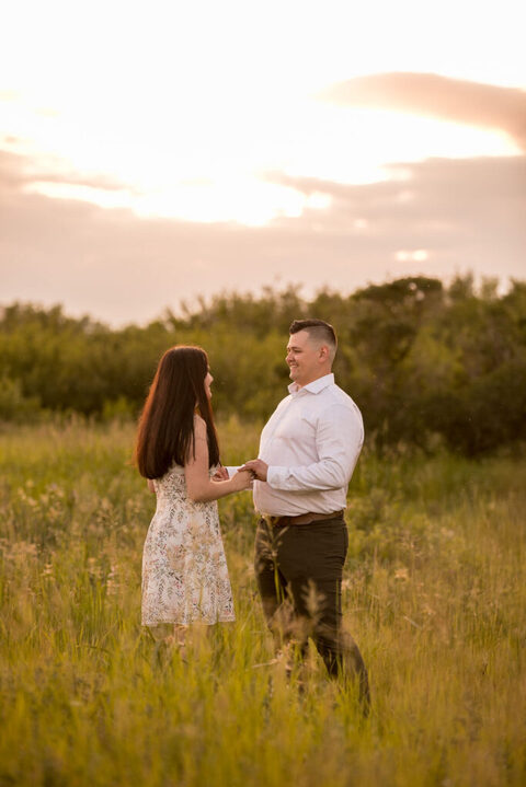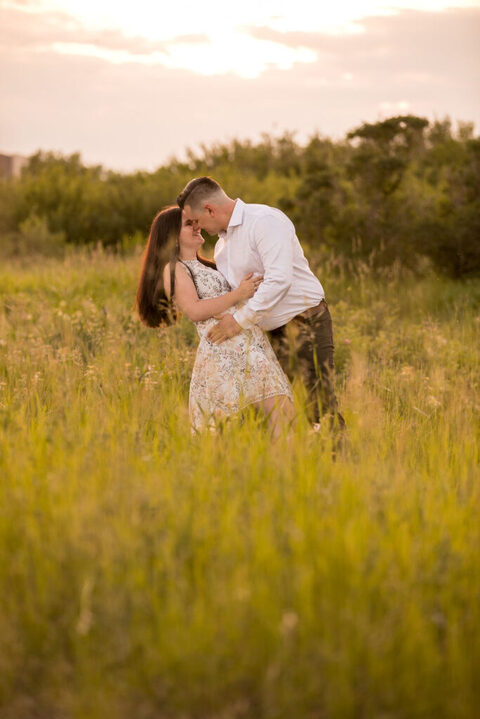 We took advantage of the unique features of the prairie landscape, incorporating wide shots to showcase the expansive horizon and intimate close-ups that captured the couple’s connection. The natural beauty of the prairie complemented the genuine emotions of Kaitlyn and Daniel, creating timeless and authentic engagement photos.