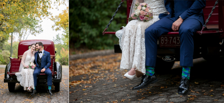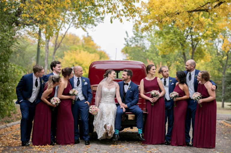 Ashley and Gabe were one of the lucky couples that actually got warm weather and fall colour for their wedding. It was a gorgeous day in Regina and we made the most of it a little bit of rain threatening their outdoor ceremony in the Sandman Hotel Courtyard, and a fantastic vintage Ford truck for photos with some fall foliage. Thank you, Ashley & Gabe for trusting us with your wedding memories!
