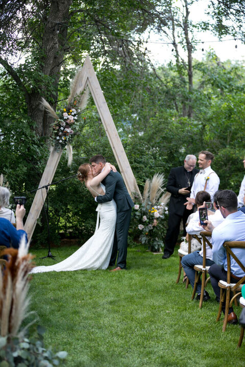 Justin and Anneliese were married in Justin’s parent’s backyard in south Regina. Their wedding was an absolute dream. The details, the color palette, the florals, the cake – everything was perfect. This wedding was a dream to photograph. Please enjoy this selection of just a few of our favorite photos from Anneliese and Justin’s backyard wedding.