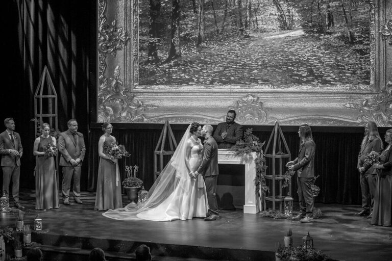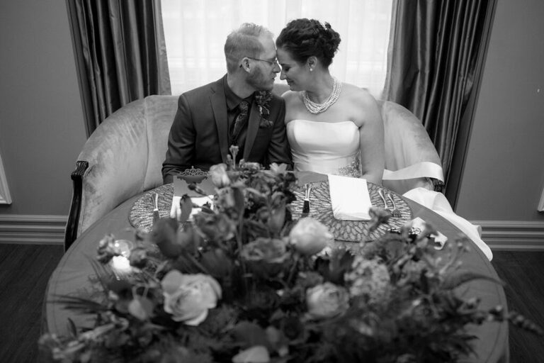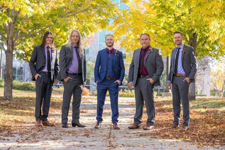 Alison and Kenneth met in University where they were both involved in theatre so the University of Regina theatre was the perfect location for them to say “I do”. It was a beautiful fall day filled with rich colours, and the last of the autumn sun. We spent some time with the Bridal Party taking photos around the University before heading to the stunning Hotel Saskatchewan for an intimate reception. It was a gorgeous day and we were so happy to be a part of it.