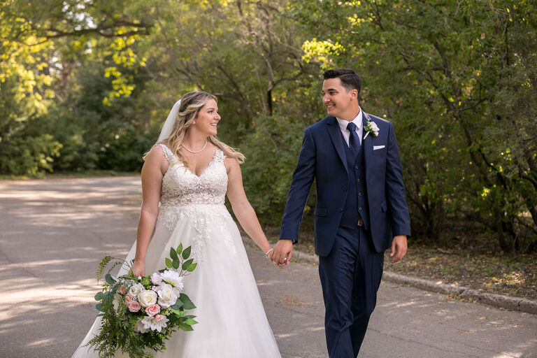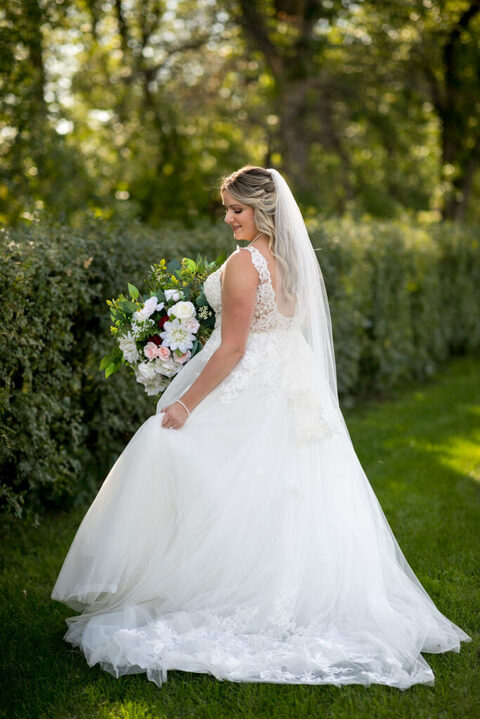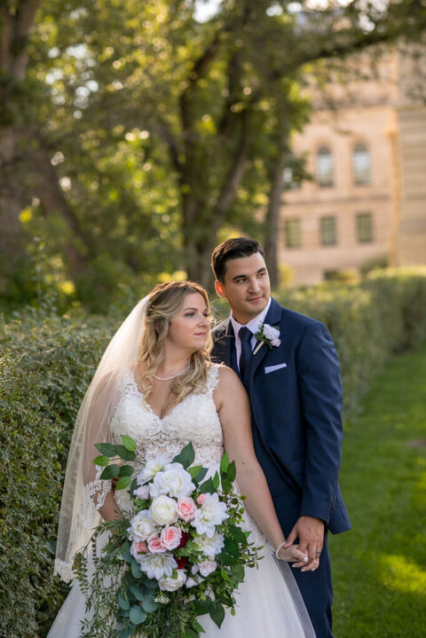 Taryn and Brodie’s summer wedding at Wascana Country Club in Regina was a beautiful and romantic event. The ceremony took place at Grace Lutheran Church. Taryn looked stunning in her elegant white dress, and Brodie was handsome in his classic suit. The couple exchanged heartfelt vows beneath in the beautiful sanctuary, promising to love and support each other for the rest of their lives. After the ceremony, guests enjoyed a delicious reception in the Wascana’s grand ballroom, filled with sparkling chandeliers and floor-to-ceiling windows. After sneaking away for a few sunset photos, the couple danced the night away to live music and celebrated with family and friends. It was a truly unforgettable day for Taryn and Brodie, and the perfect start to their new life together.